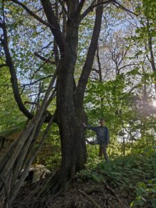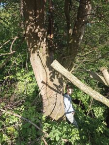Drzewo ma charakterystyczny pień, przy ziemi widać grube części korzeni, dalej na boki rozchodzą się w różne strony masywne konary